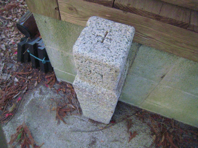 *地形図ではこの平山城址の三の丸跡には四等三角点129.4mがあることになっているのですが、見つけることは出来ませんでした。平山城址には三角点があるのでピークハントに加えることにします。*後日2015.3.8.に平山城址を訪れた山友の海彦山彦さんからお堂に立てかけている四等三角点の写真を戴きました。本来は三の丸にあるはずのものです。