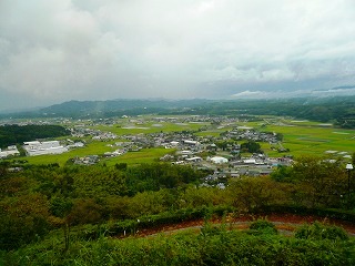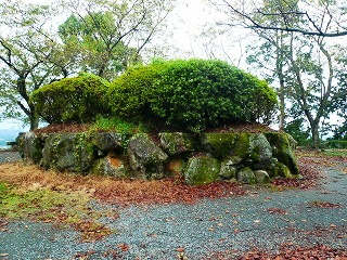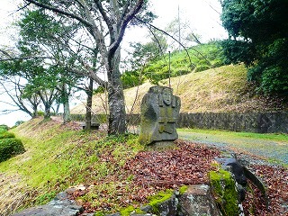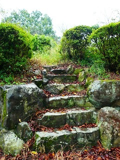 「西岳」から国道3号線に戻りさらに南下すると日輪寺つつじ公園の標識に従い左折します。すぐにさらに左折すると駐車場です。移築された眼鏡橋が見えています。ここに車を駐めて車道を登りました。車道ジクザグになっていて距離はありますが、ツツジが咲いているときは最高でしょう。まず右側に赤穂17義士の遺髪塔などがあります。さらに登っていくとツツジ園となります。東屋のあるところからは展望も開けてきます。車道にはチェーンがあり上部までは車は行けません。左端に直に登る遊歩道もあります。最高地点には隣にミカン園があります。そして、竜王山古墳があります。この山は 「竜王山」とも呼ばれていたようです。ここからの展望は優れています。小雨ですが、標高が低いので市街地などが見えています。写真などを撮って、遊歩道を直に下ってみました。階段も少しは壊れていますが、何とか下ることが出来ました。 時間的には節約できます。地形図では標高点が141mになっています。